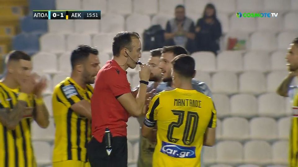 Τα λινκ του κειμένου θα ανανεώνονται μείνετε συντονισμένοι στο FWS. ΠΟΔΟΣΦΑΙΡΟ Super League 1. Με κόκκινη κάρτα για διαμαρτυρία αποβλήθηκαν ο προπονητής της ΑΕΚ Δημήτρης Μάζης και ο τιμ μάνατζερ Κωνσταντίνος Δάνδολος.